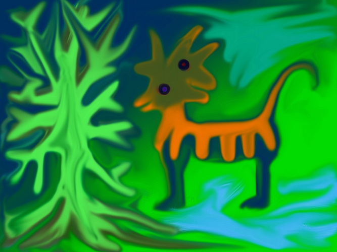 Ich bin Vierauge, ein Fantasietier. Nicht alle können mich sehen. Ich heiße Vierauge, weil ich vier Augen habe. Hier stehe ich aber so, dass ihr nicht alle Augen sehen könnt. Bisher hat mich nur Blauauge in seinen Träumen gesehen. Aber das ist eine andere Geschichte. Vielleicht erzähle ich sie euch später einmal... |